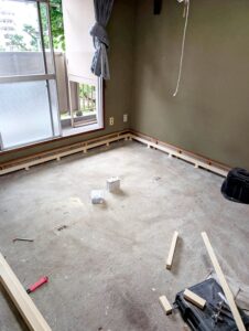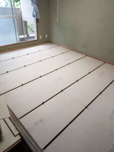 blog 畳の下地工事ををして足元を快適に 森山 洋平 スタッフブログ こんにちは! ライズホーム営業の森山です。 今回は和室の畳の下の工事を やらせていただきました。 仕上りは畳ですが、その下にネダフォームという 発泡プラスチックが敷いてあり、 そちらが経年で割れたりしていたので、 畳自体がブカブカ浮いた感じになっていました。 今回は置床という工法で支持脚という物を付けて、 その上にパーティクルボードを敷く 工法で施工しました。 前の記事 一覧へ戻る