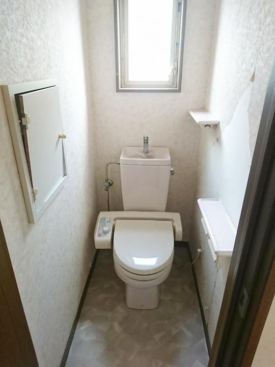 | 使用商材・建材 | トイレ:TOTO レストパル トイレ 天井 FE-1278 壁(メイン) RE-7688 壁(アクセント) 77-1084 床(フロアタイル) IS-748 |