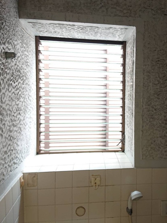 長年ご使用の浴室窓はルーバー式の窓で風が入り寒さを感じました。