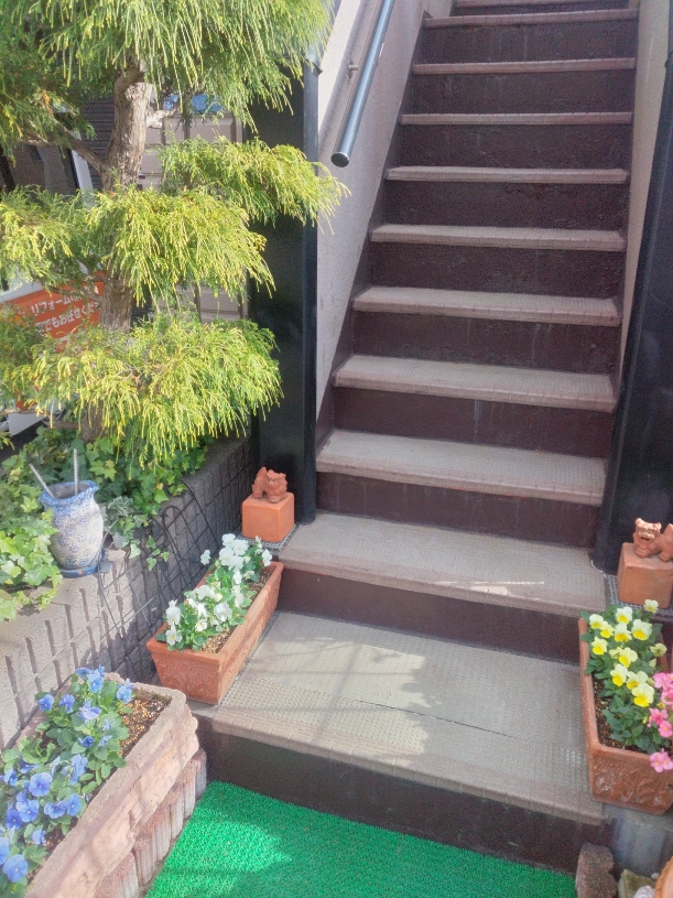 階段の手前に手すりを付けて、安心して昇り降りができるようになりました。